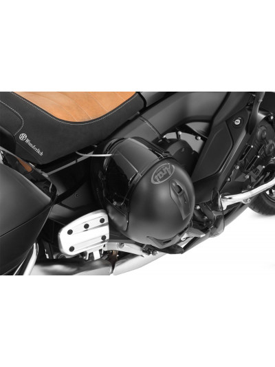 Il cavo in acciaio rivestito può proteggere due caschi e, in caso di inutilizzo, può essere semplicemente agganciato.