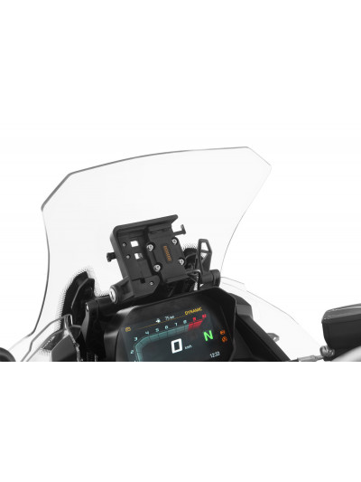 Con questo attacco per strumenti universale abbiamo sviluppato una pratica base a cui fissare l’SP-Connect Smartphone System Mirror Bundle (45151-0), ma anche il nostro adattatore per tubi tondi Multiclamp (21176-102) in modo invisibile ed ergonomico sopra lo strumento combinato TFT.