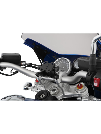 Il supporto per dispositivo/navigazione viene avvitato in modo sicuro e semplice sulla morsetto del manubrio con il supporto base