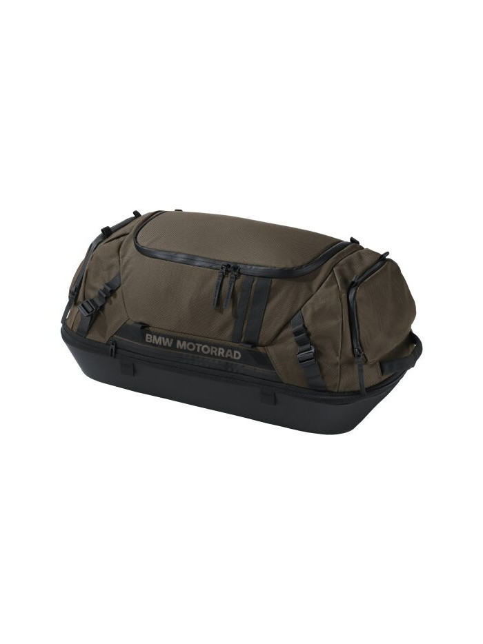 La capacità di questa grande borsa posteriore Adventure Collection in resistente tessuto di nylon può essere portata da 50 a 60 litri, il che la rende ideale per i viaggi più lunghi. Può essere montata sul ponte portapacchi o sulla sella del passeggero tramite cinghie di fissaggio.