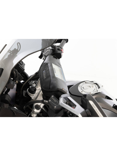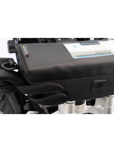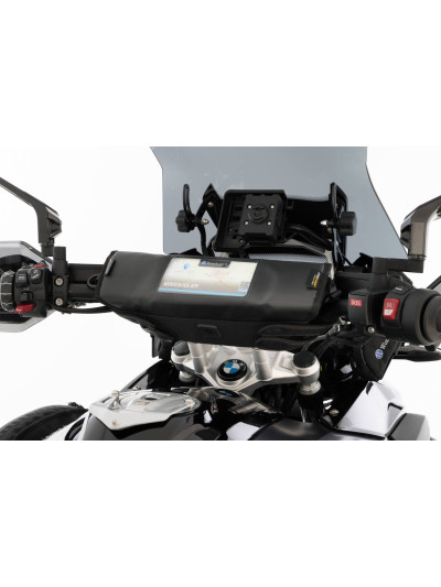La borsa per cruscotto Wunderlich è cosìraffinata che occupa discretamente lo spazio inutilizzato tra il parabrezza e il pannello dei comandi.