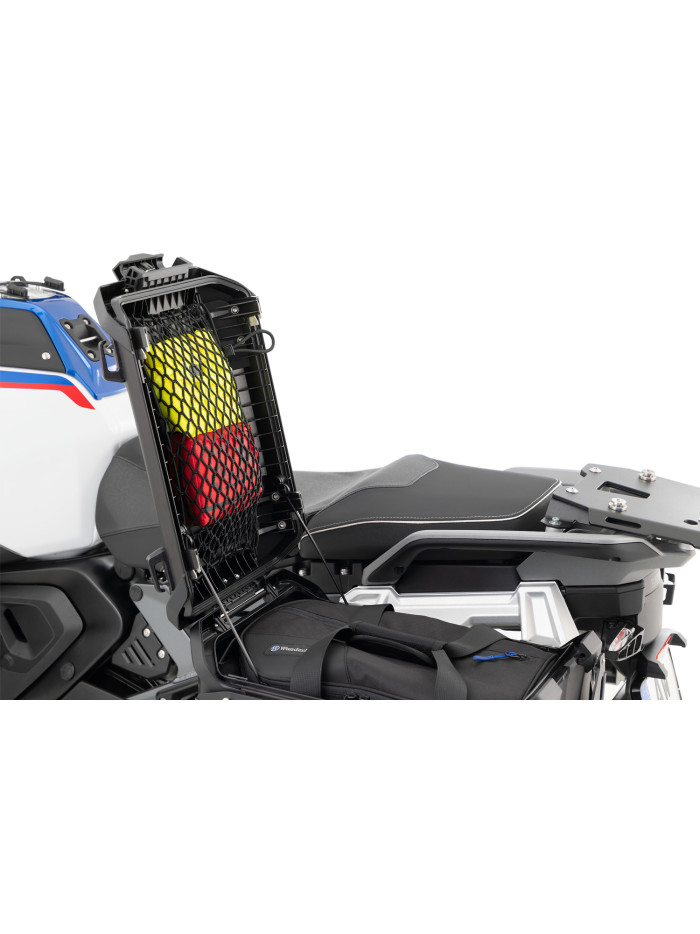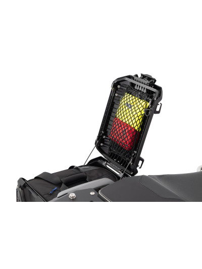 Per tutto ciò che deve essere riposto velocemente durante il viaggio e subito disponibile: abbigliamento antipioggia, kit di pronto soccorso o attrezzi possono essere riposti nel coperchio delle valigie in alluminio o del topcase originali della BMW R 1300 GS e GS Adventure e sono immediatamente accessibili dopo l’apertura. La rete robusta garantisce un fissaggio sicuro e il cordone elastico può essere regolato in maniera ottimale grazie a un fermo. Si aggancia ai ganci già presenti.