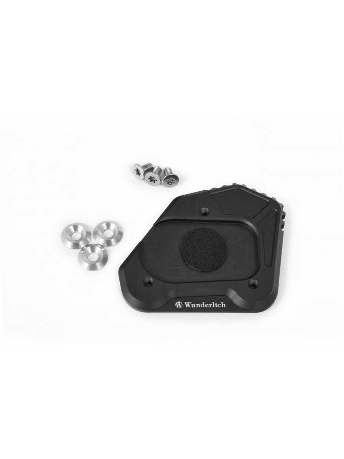 Il rinforzo addizionale per la F 850 o 750 GS ribassata: A pieno carico o su terreni irregolari, la F 850/750 GS rischia di cadere facilmente dal cavalletto laterale. La piastra di estensione precisamente formata si avvita rapidamente al cavalletto ed elimina questo rischio per la GS.