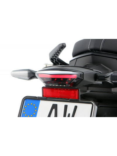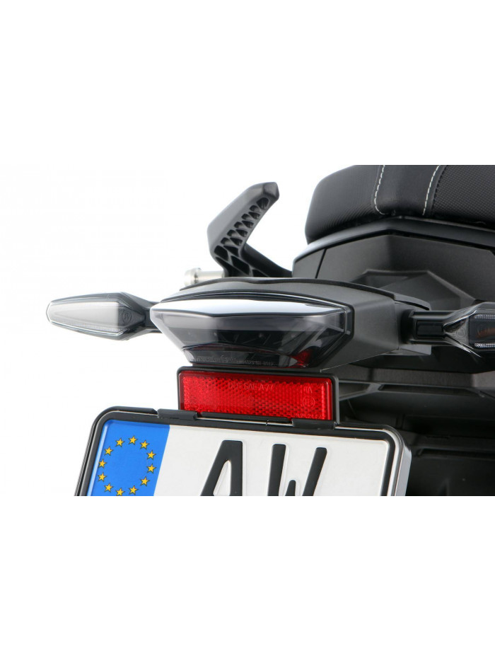 L'estrema potenza luminosa della tecnologia LED HighPower Kellermann del sistema integrato di luci di marcia diurna DAYRON® LED, insieme alla superficie luminosa unica e brillante della nuova ed eccezionale tecnologia delle lenti, garantisce una visibilità ottimale nel traffico. La disposizione dell'innovativo sistema di luci di marcia diurna amplia visivamente la silhouette anteriore e la visibilità della moto.