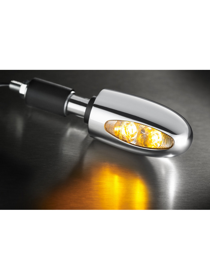 Con moderni LED ad alta potenza e la tecnologia HighPower LED sviluppata da Kellermann si ottiene una segnalazione straordinariamente brillante. La struttura dell’alloggiamento riproporzionata segue la linea dell’estremità del manubrio.