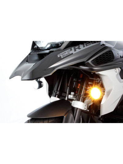 L'estrema potenza luminosa della tecnologia LED HighPower Kellermann del sistema integrato di luci di marcia diurna DAYRON® LED, insieme alla superficie luminosa unica e brillante della nuova ed eccezionale tecnologia delle lenti, garantisce una visibilità ottimale nel traffico. La disposizione dell'innovativo sistema di luci di marcia diurna amplia visivamente la silhouette anteriore e la visibilità della moto.