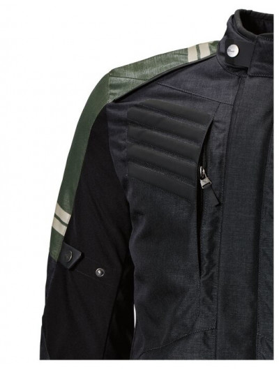 La giacca da moto si adatta alle maniche con un sistema continuo, oltre ad un sistema di regolazione rapida con bottone a pressione. I polsini sono regolati con velcro, il collo con bottone a pressione.