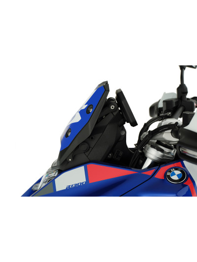 Questa staffa universale si inserisce discretamente nell'incavo del cupolino HIGHWAY, che si trova a sinistra, sotto l'indicatore del carburante.