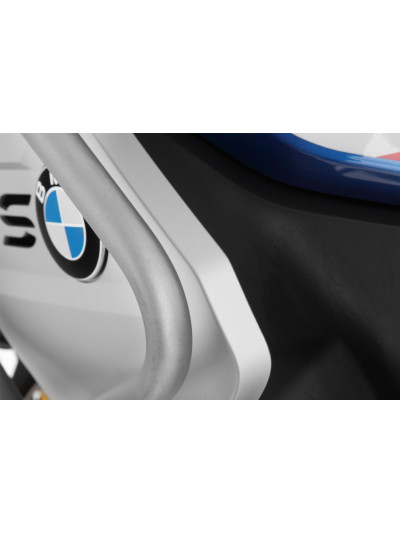 Questa protezione per serbatoio, in abbinamento con la protezione per motore originale, impedisce in maniera affidabile che si abbiano dei danni alla carenatura della F 850 GS Adventure . Grazie ai molteplici punti di attacco la moto non puo’ ribaltarsi in caso di caduta. Cio’ evita anche ulteriori danni alla parte anteriore della moto. La protezione per serbatoio si adatta egregiamente all’estetica della 850, senza dare troppo nell’occhio. La liberta’ di movimento del conducente non viene limitata.