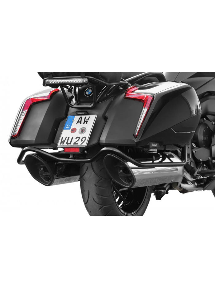 Dal punto di vista estetico si integrano perfettamente e aumentano la protezione della pesante K 1600 B/Grand America sul retro del veicolo. In caso di caduta, le valigie sporgenti subiscono danni immediatamente.