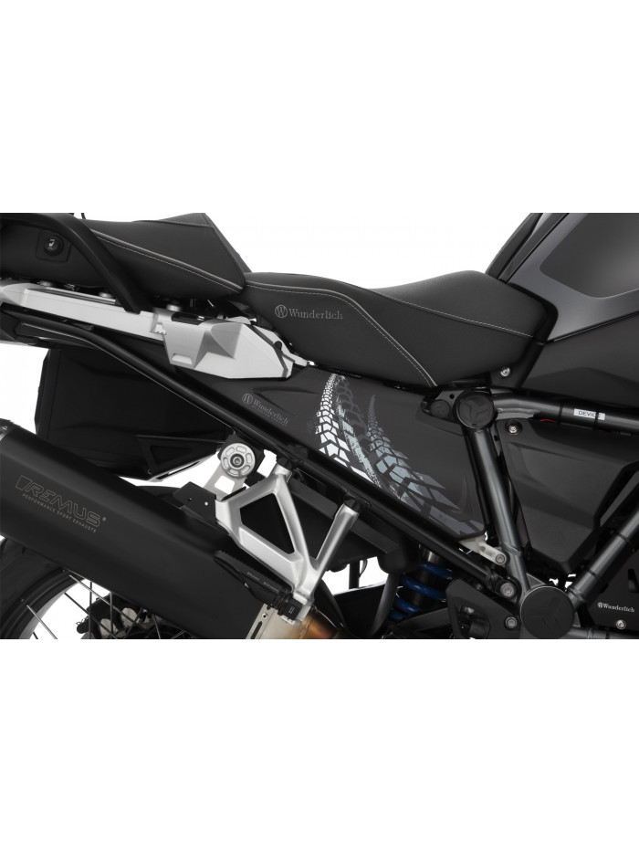 Questa esclusiva variante di design convince anche per le proprietà del prodotto comprovate ed estremamente utili: le due metà della carenatura chiudono le aperture laterali del telaio posteriore a destra e a sinistra con una perfetta aderenza. Lo sporco vomitato, i trucioli di pietra, gli spruzzi d'acqua o gli spruzzi vengono efficacemente catturati o deviati prima che raggiungano il conducente e il passeggero anteriore. Lo sporco della macchina e dei componenti tecnici è notevolmente e visibilmente ridotto. Il design, dinamico grazie alle scanalature, rimane discreto e appare discreto e armonioso sulla motocicletta. Il montaggio e lo smontaggio sono estremamente facili.