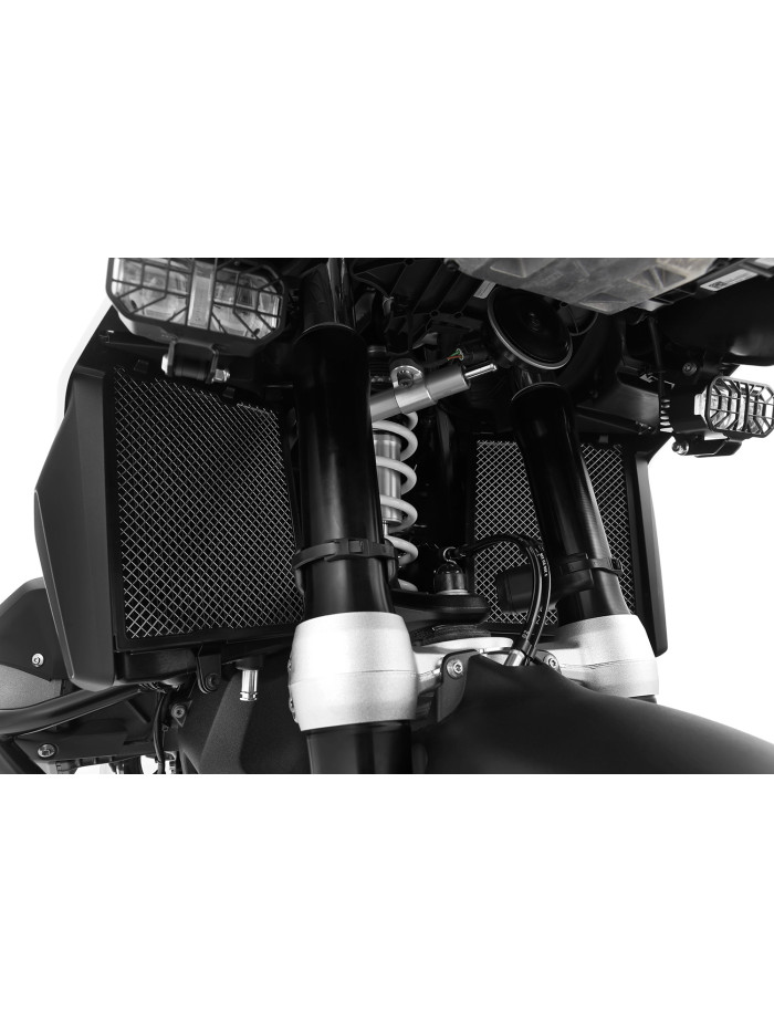 Il radiatore è posizionato in modo aerodinamicamente corretto, ottimale nel flusso d'aria. Tuttavia, ciò espone la rete di raffreddamento finemente nervata agli impatti di ghiaia, insetti e altri detriti. Oltre allo sporco inevitabile, che già comporta una riduzione delle prestazioni di raffreddamento, i danni alla rete di raffreddamento sono inevitabili a causa delle lamelle brutte e piegate. In caso di pesante impatto di ghiaia, non è esclusa la perdita, rendendo impossibile qualsiasi ulteriore spostamento poiché il raffreddamento del motore non è più garantito. La pulizia è complicata e richiede molto lavoro manuale. La Protezione Radiatore Ultimate protegge efficacemente il radiatore, assicura un'ampia superficie di r