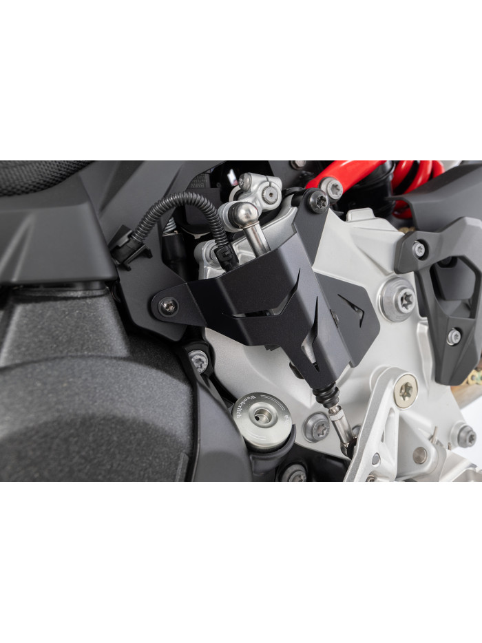 La nostra estensione integrata nella forma, 135 mm più lunga e 50 mm più larga del parafango di serie, amplia notevolmente l’area di protezione proteggendo i componenti tecnici. Cattura gli schizzi d’acqua e lo sporco della strada deviandoli efficacemente verso il basso.