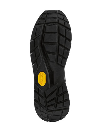 Una suola outdoor Vibram di altissima qualità in combinazione con una suola in EVA bicomponente resistente all'olio e al carburante di spessori diversi nelle varie zone contrassegnati con colori