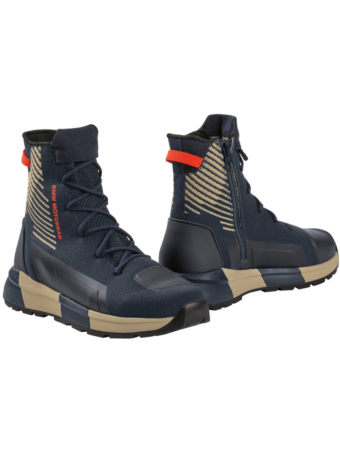La sneaker Ginza leggera e ariosa in 3D-knit unisce un look sportivo a un comfort eccellente. La suola robusta e leggera con inserto BMW MOTORRAD, così come le superfici rinforzate in TPU nella zona della leva del cambio e della punta della scarpa, sono ideali per le esigenze della guida quotidiana in moto.