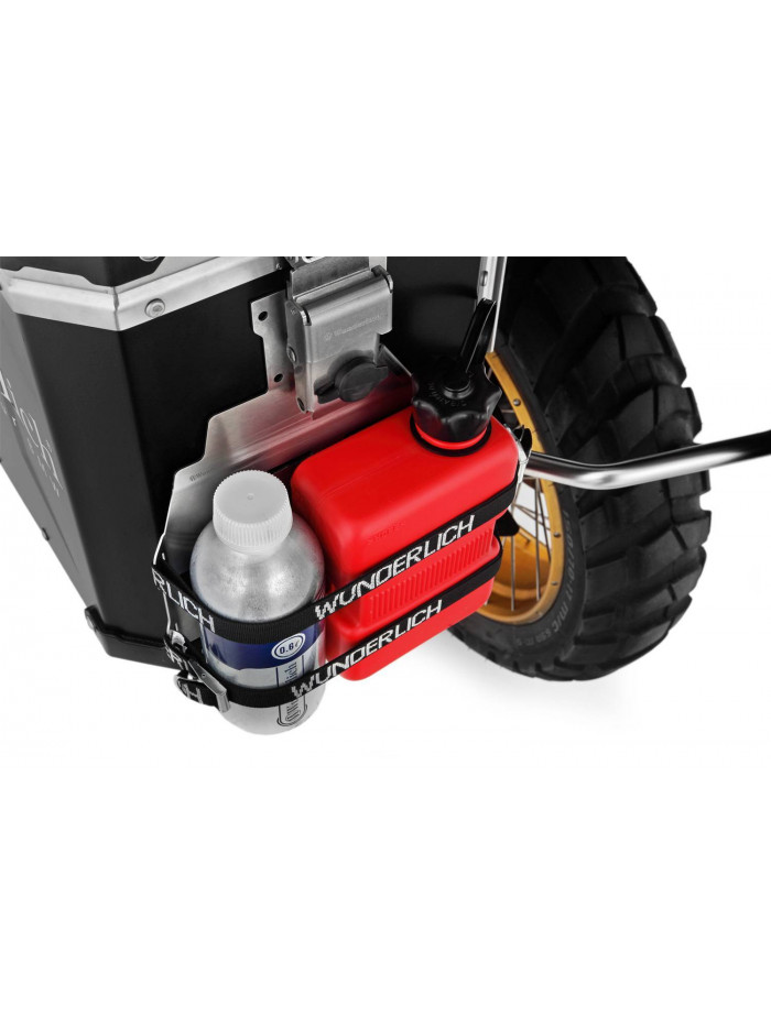 Wunderlich non vi può aiutare con la tenuta dei vostri recipienti, ma vi può però una soluzione: il portatutto laterale Wunderlich.