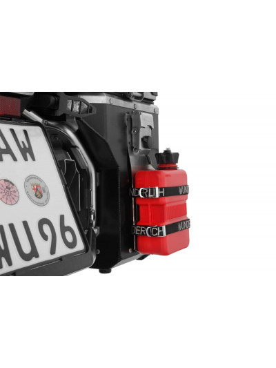 Il solido rack in acciaio inossidabile è progettato per tenere due dei collaudati bottoni in alluminio Wunderlich. Ciò significa che petrolio e benzina, ad esempio,