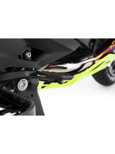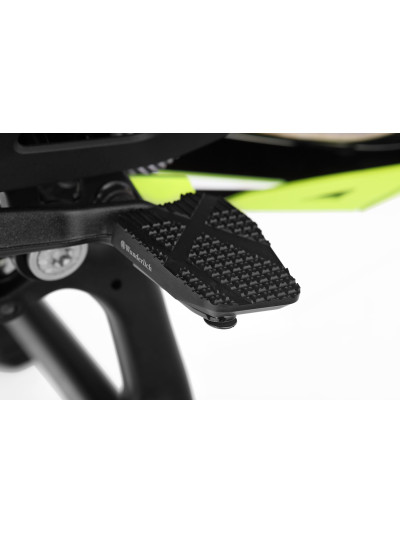 Con questo aiuto al montaggio (barra di centraggio) adesso e’ tutto molto piu’ facile: e’ sufficiente avvitare la barra in alluminio ad uno dei bulloni della ruota posteriore e subito la ruota si aggancia e si fissa con i restanti dadi.