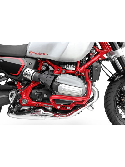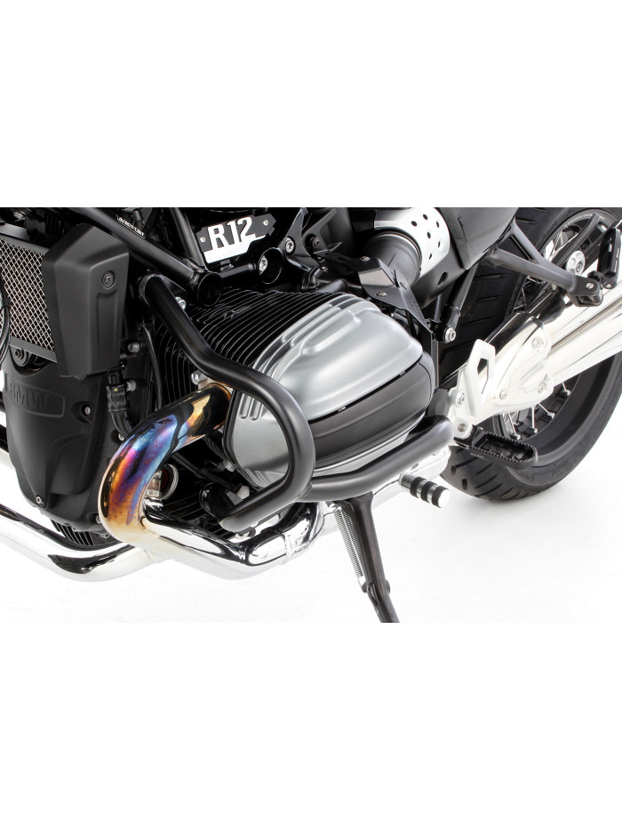 Le estremità posteriori, non supportate, delle barre di protezione motore standard spesso non sono rinforzate contro il telaio, come nel caso delle BMW R 1300 GS e GSA. Questo rappresenta un punto debole critico nella barra di protezione motore. In caso di caduta o impatto, possono flettersi elasticamente o, sotto forti sollecitazioni, deformarsi plasticamente, poiché le forze e i momenti non vengono trasmessi e supportati direttamente dal telaio. Questo comporta il rischio di danni collaterali, ad esempio ai cilindri.