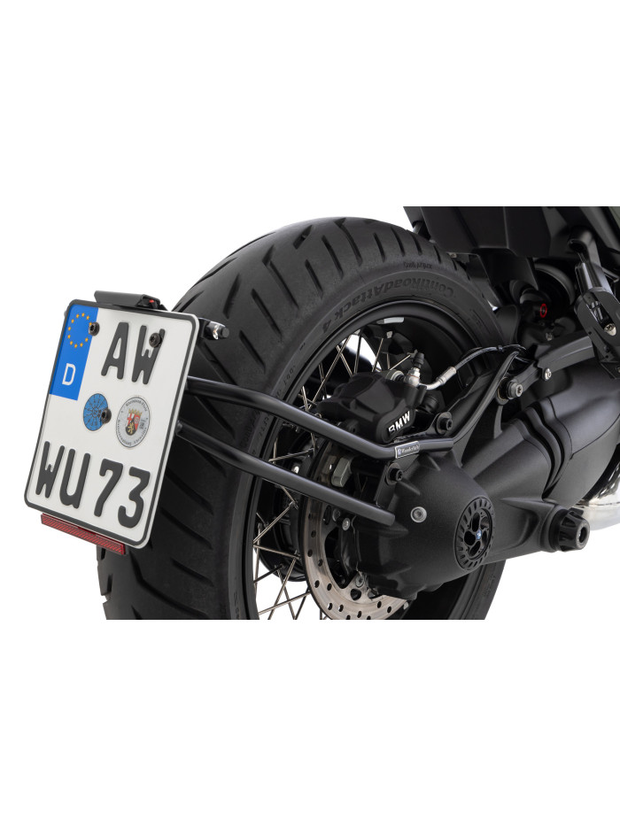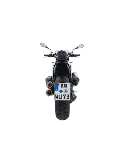 Il portatarga SWING si integra perfettamente nella linea laterale delle BMW R 12 e R 12 nineT, lasciando visibile la ruota posteriore