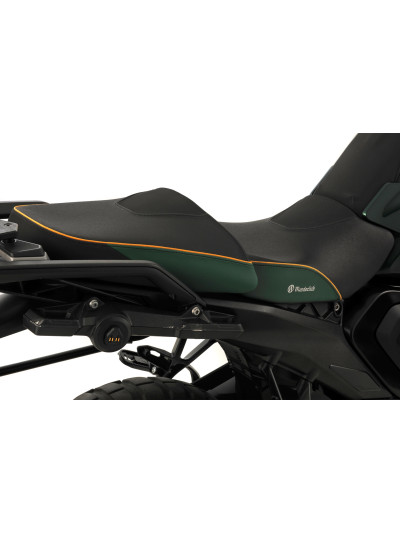 Realizziamo le nostre selle passeggero con un distintivo contorno ergonomico 3D. La forma e l'inclinazione del nucleo della sella, lavorata con cura, supportano la postura naturale ed ergonomica del bacino. Una caratteristica speciale della nostra sella passeggero è il contorno di supporto integrato nella parte anteriore della sella, che offre un ulteriore sostegno durante la frenata. Questa integrazione nella moto assicura una guida rilassata e attiva. Senza dubbio, una posizione rilassata aumenta la sicurezza passiva. Questa sella AKTIVKOMFORT è dotata della più recente tecnologia ThermoPro, che riduce la temperatura della superficie della sella fino a 25°C sotto il sole intenso rispetto ai materiali di rivestimento tradizionali. È disponibile anche una sella pilota abbinata.