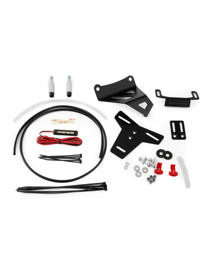 Old School: Il supporto targa laterale LOW si integra perfettamente nella linea di base destra e colpisce per il suo stile retrò. Design pulito che lascia scoperta la ruota posteriore I punti di montaggio, il passaggio dei cavi e la luce targa discreta garantiscono un risultato estetico pulito e retrò di alta qualità Il supporto targa laterale LOW si integra perfettamente nella linea della moto. Nonostante la costruzione robusta in più parti, colpisce per il suo design leggero che valorizza la ruota posteriore. È realizzato in acciaio inox di alta qualità, con una finitura curata nei minimi dettagli. Il rivestimento nero a polvere dona eleganza e garantisce una protezione duratura. La foratura del supporto LOW è identica a quella originale, per cui la targa si monta facilmente senza necessità di modifiche. La luce targa a LED è regolabile in altezza ed è omologata E. Anche la distanza della targa rispetto alla ruota può essere regolata individualmente. Il supporto si monta sui punti di fissaggio già presenti sul forcellone della moto. Il supporto targa LOW è omologato esclusivamente per il montaggio di una targa e della luce LED fornita.